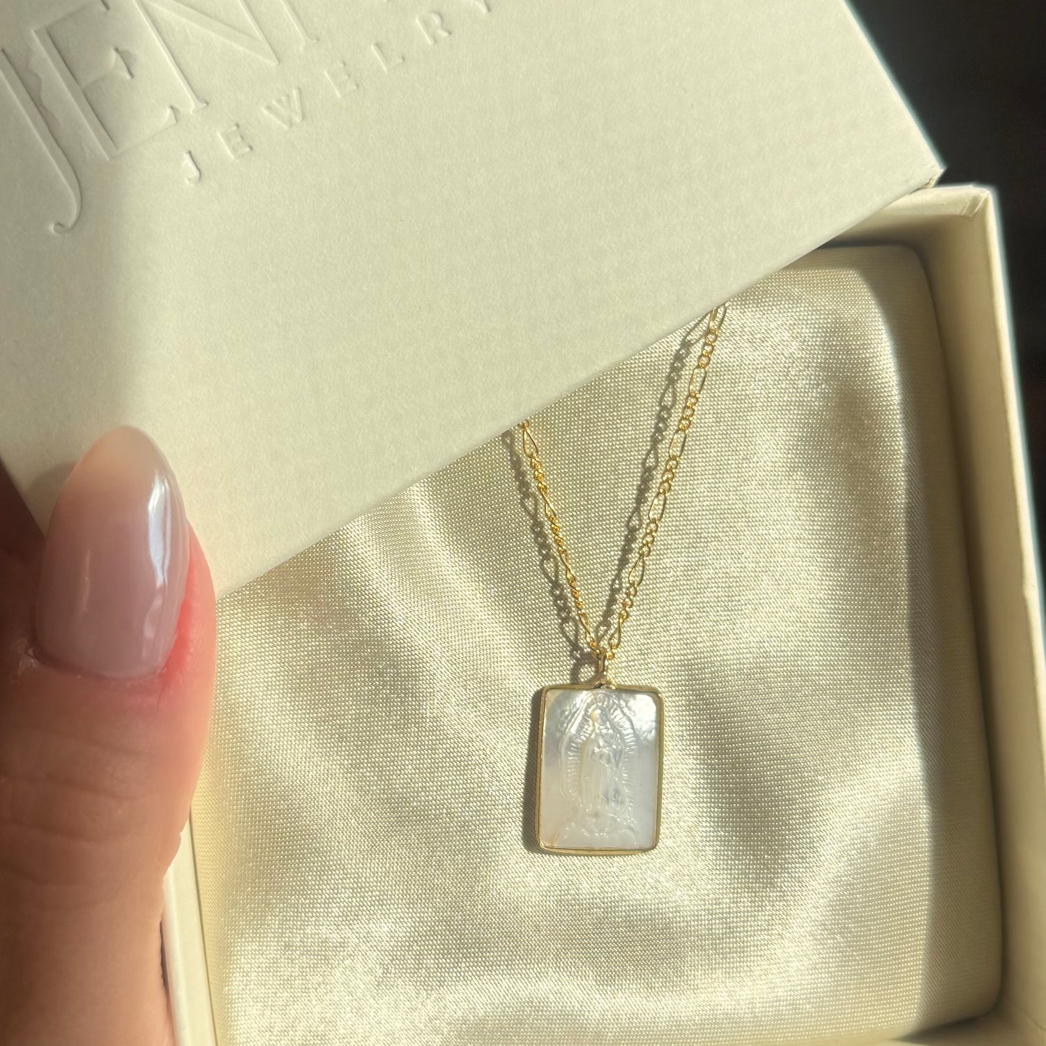- Square Mother Mary White Pearl Pendant